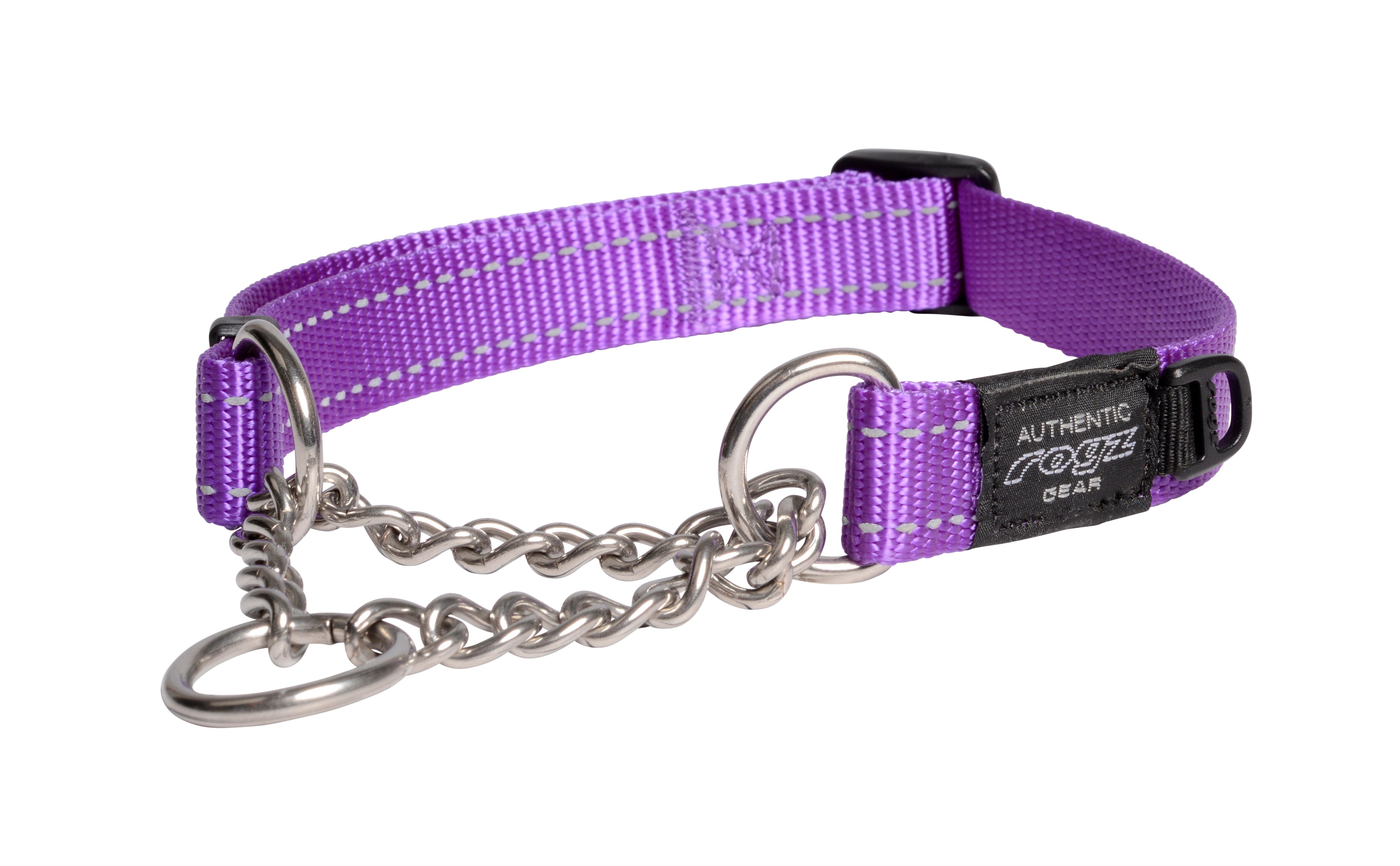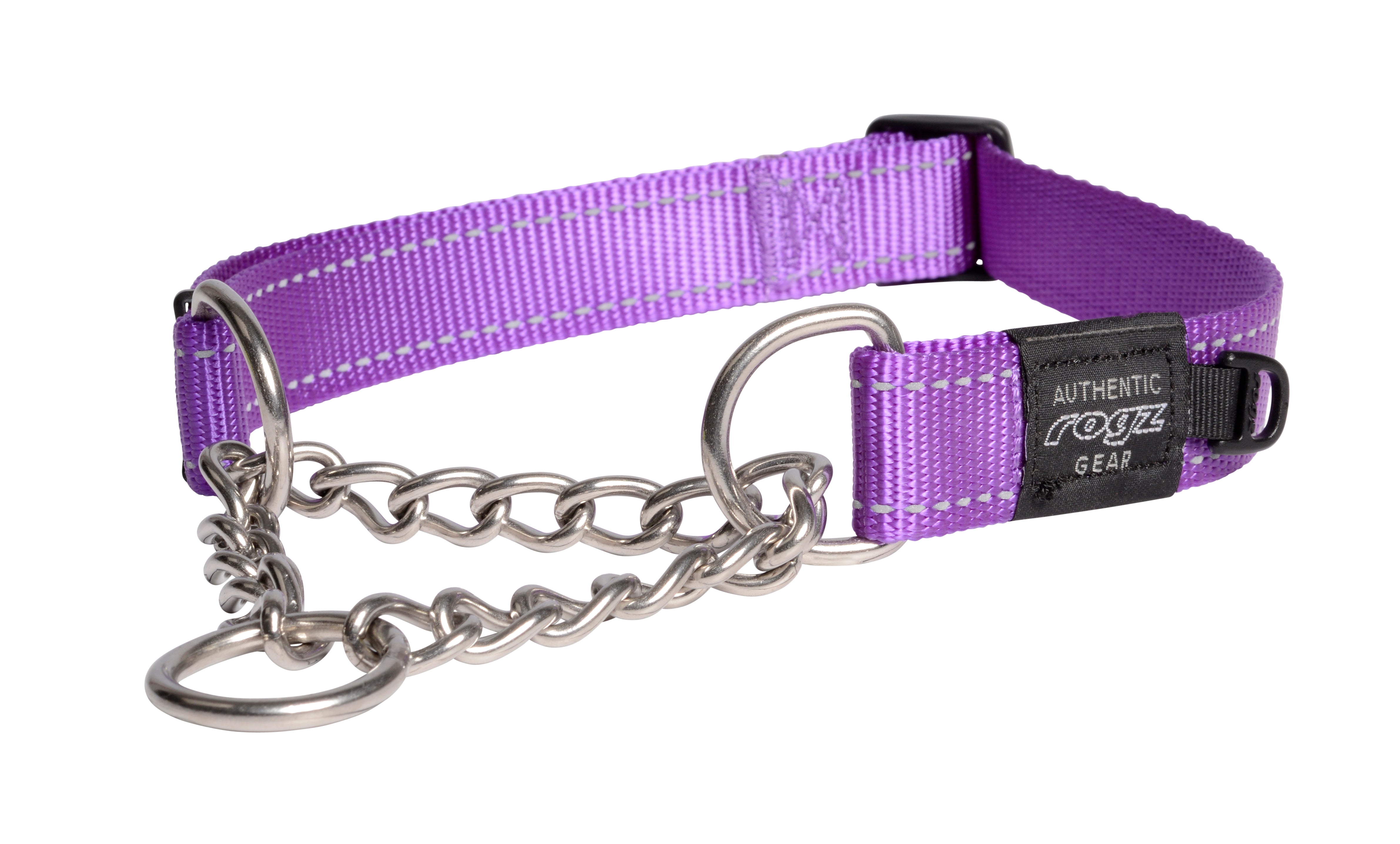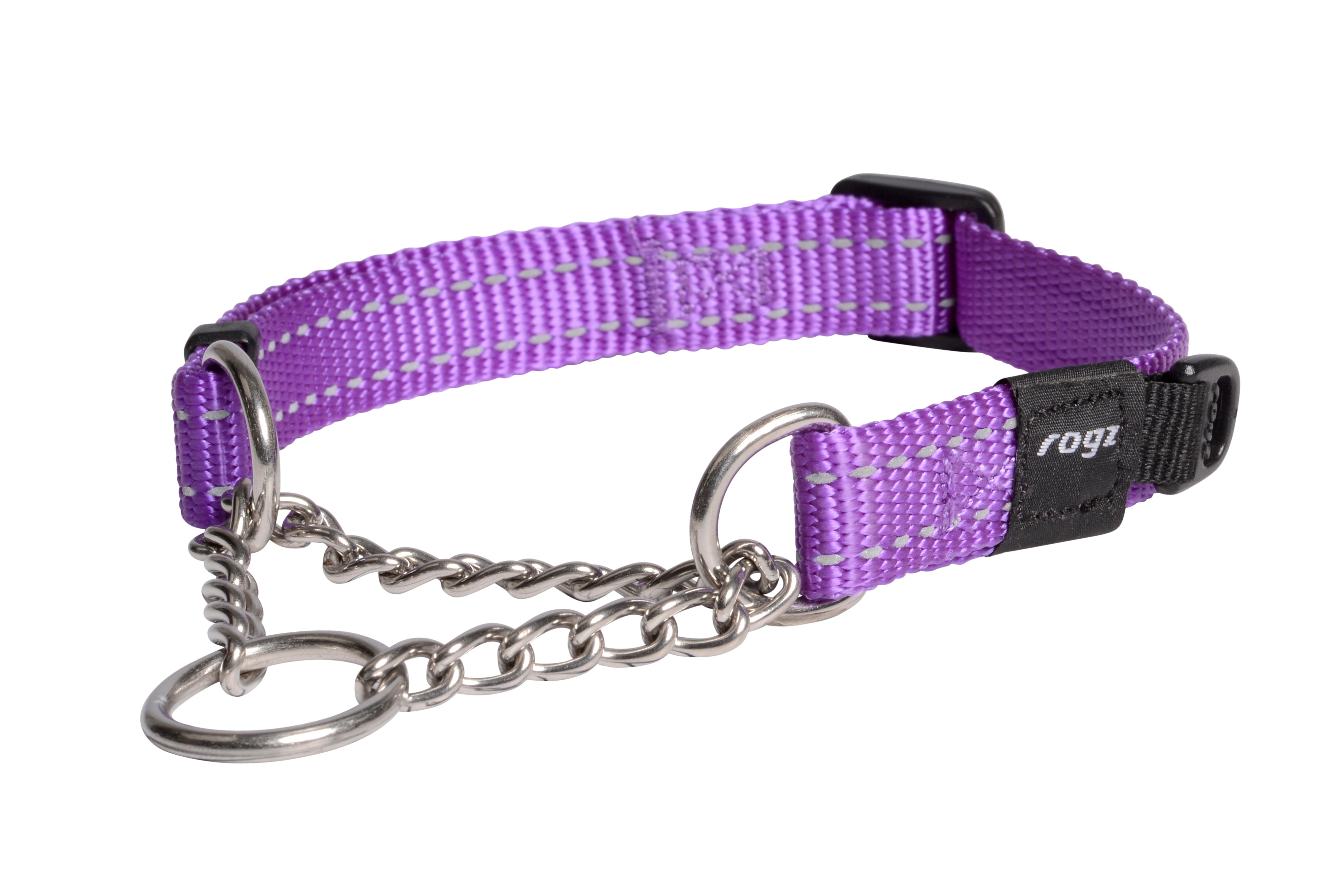 Recommended for behaviour correction and training, Rogz Utility Control Collar Chain are safe and non-slip with the sound and vibration from the rust-proof stainless steel chain, together with gentle pressure applied via the lead, aiding in obedience training. D-rings are drawn together to prevent your dog from reversing out of the collar, ensuring you maintain control. Highly reflective stitching provides safe, night-time visibility and there is an accessory D ring for ID-Tag attachment