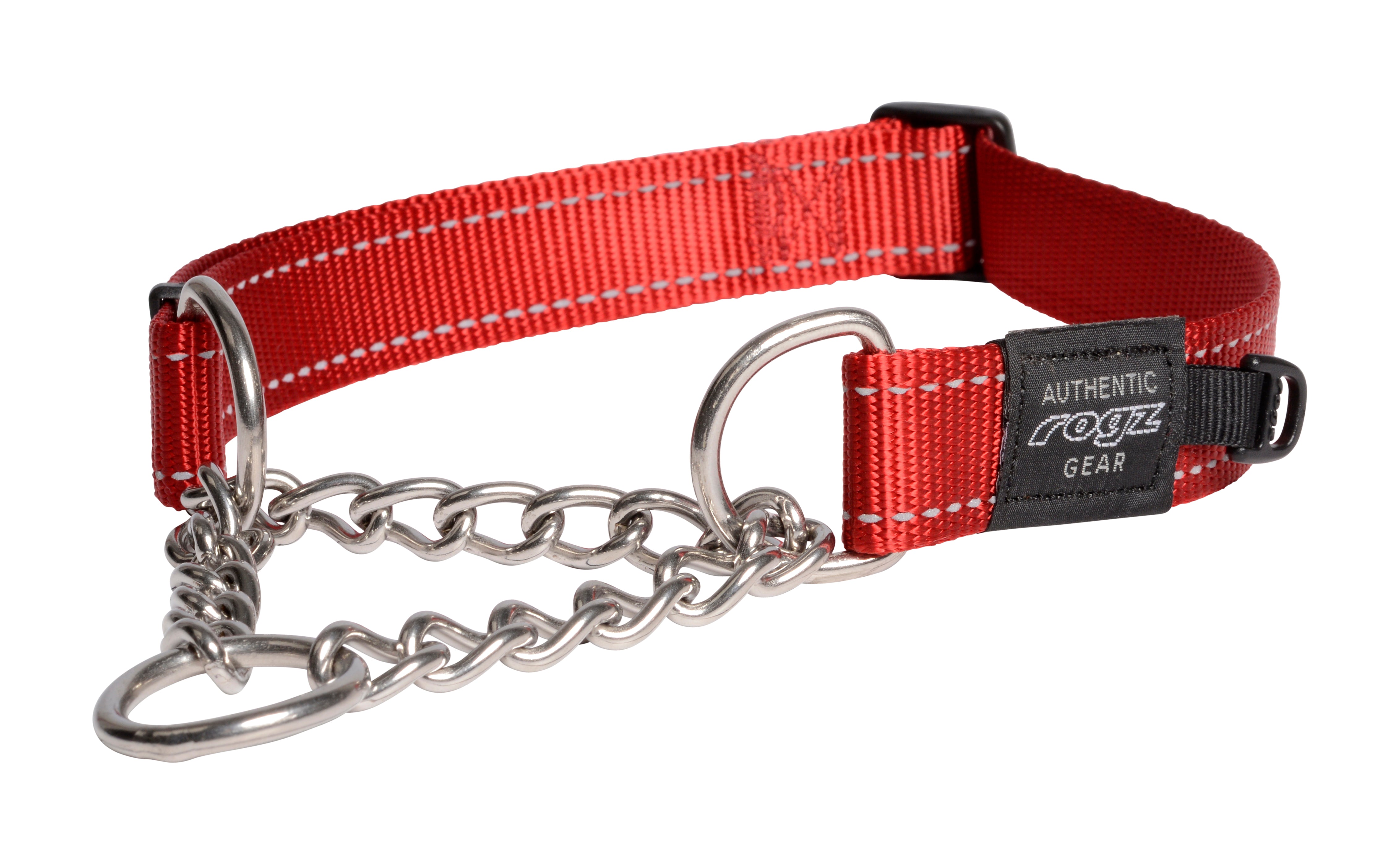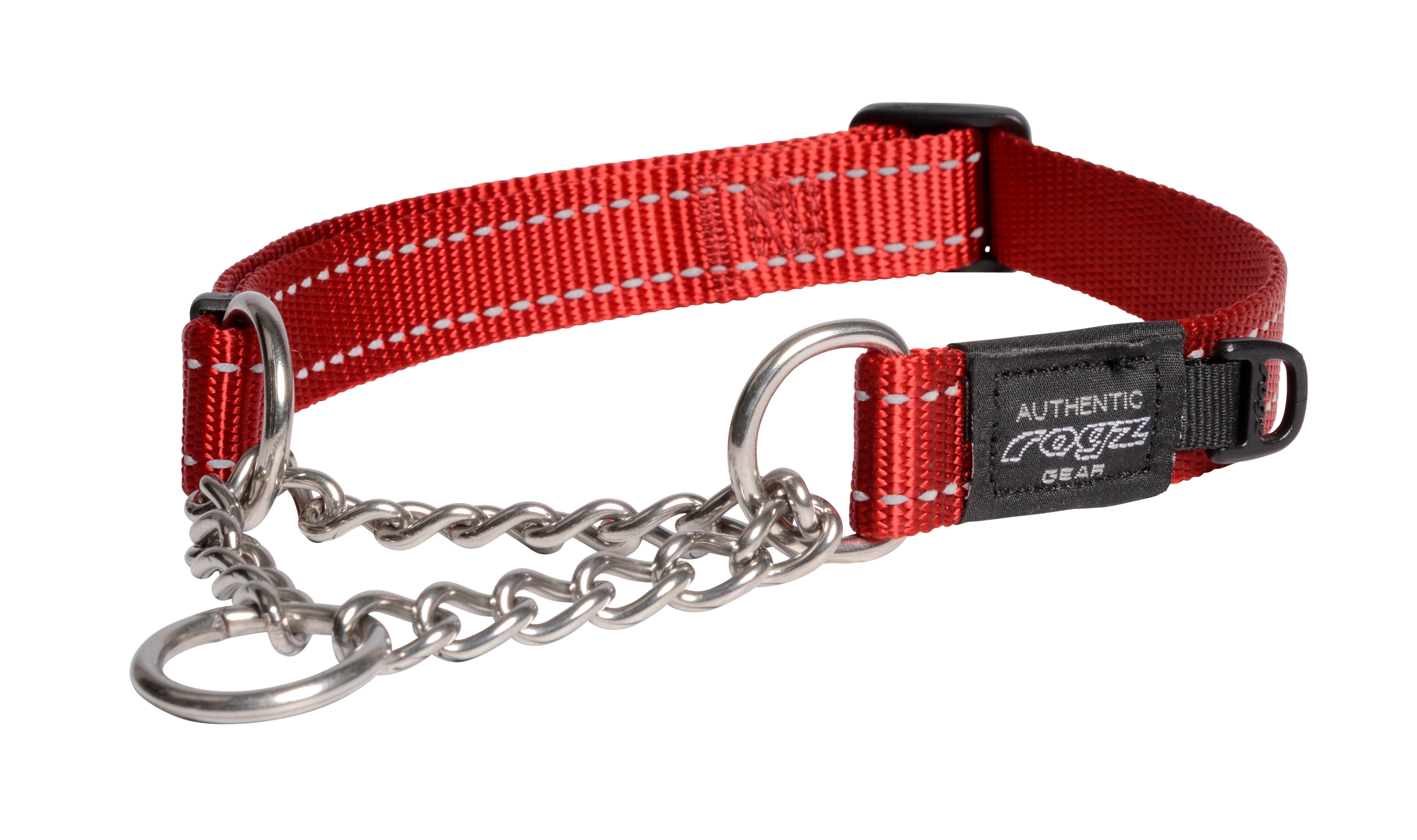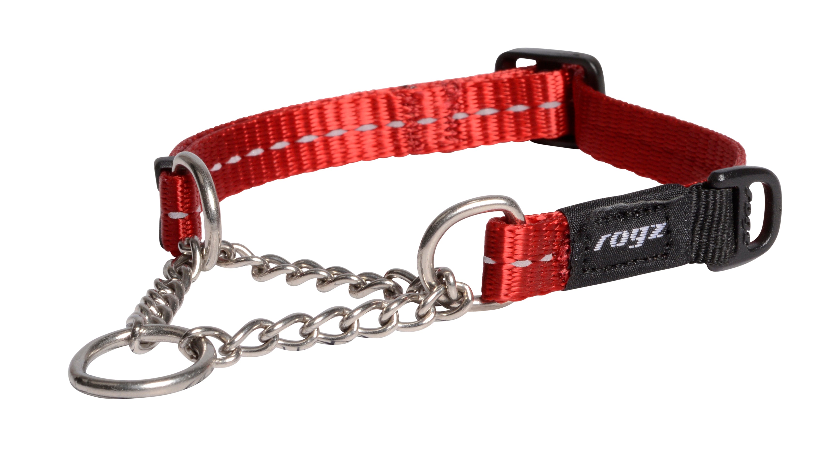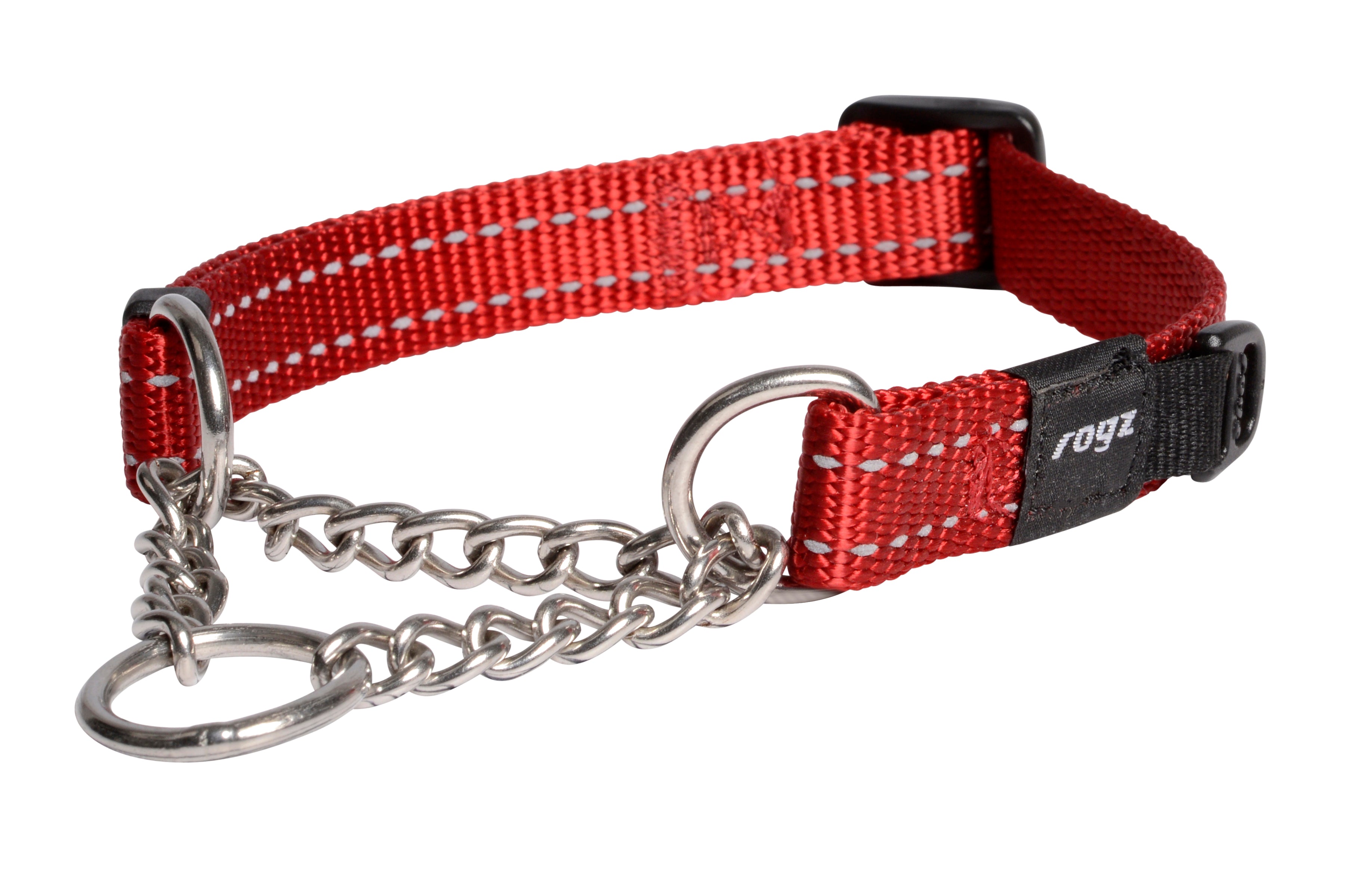 Recommended for behaviour correction and training, Rogz Utility Control Collar Chain are safe and non-slip with the sound and vibration from the rust-proof stainless steel chain, together with gentle pressure applied via the lead, aiding in obedience training. D-rings are drawn together to prevent your dog from reversing out of the collar, ensuring you maintain control. Highly reflective stitching provides safe, night-time visibility and there is an accessory D ring for ID-Tag attachment