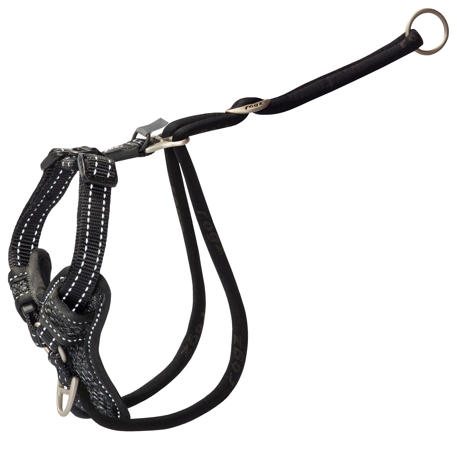 The Stop Pull harness may be used with a single attached lead on the rear ring or with a double ended lead attaching also to the front chest clip for additional control.