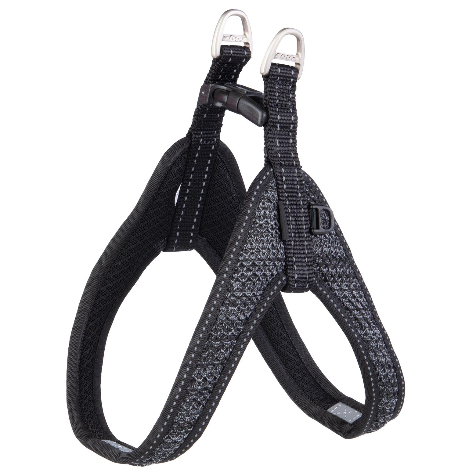 Reflective Stitching: reflective Nylon is woven into the webbing for night time visibility. Fast to Fit: Just step in and clip over for an easy, no-nonsense solution. Superior Comfort: Soft Webbing is gentle on your dog's skin. The harness transfers pressure from neck to chest for more control when walking. ID Tag Attachment: Attach and ID tag in case of accidental straying or separation.