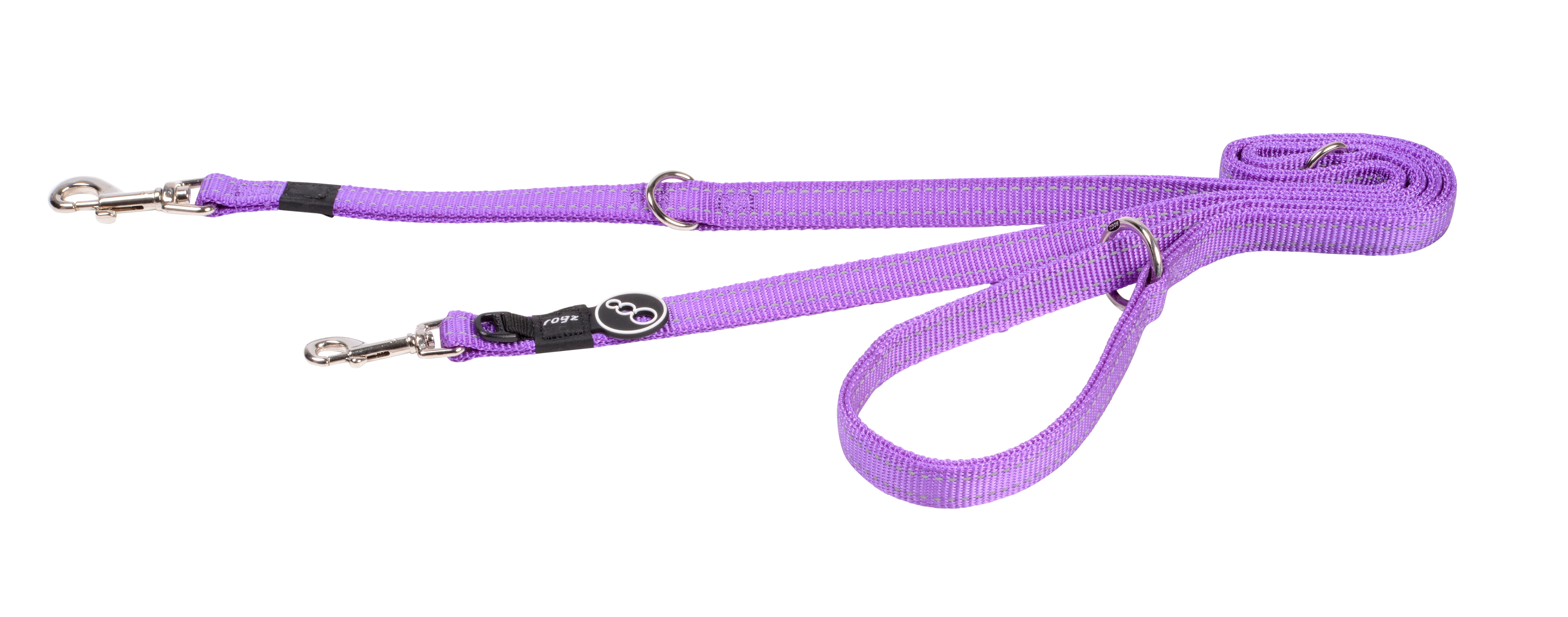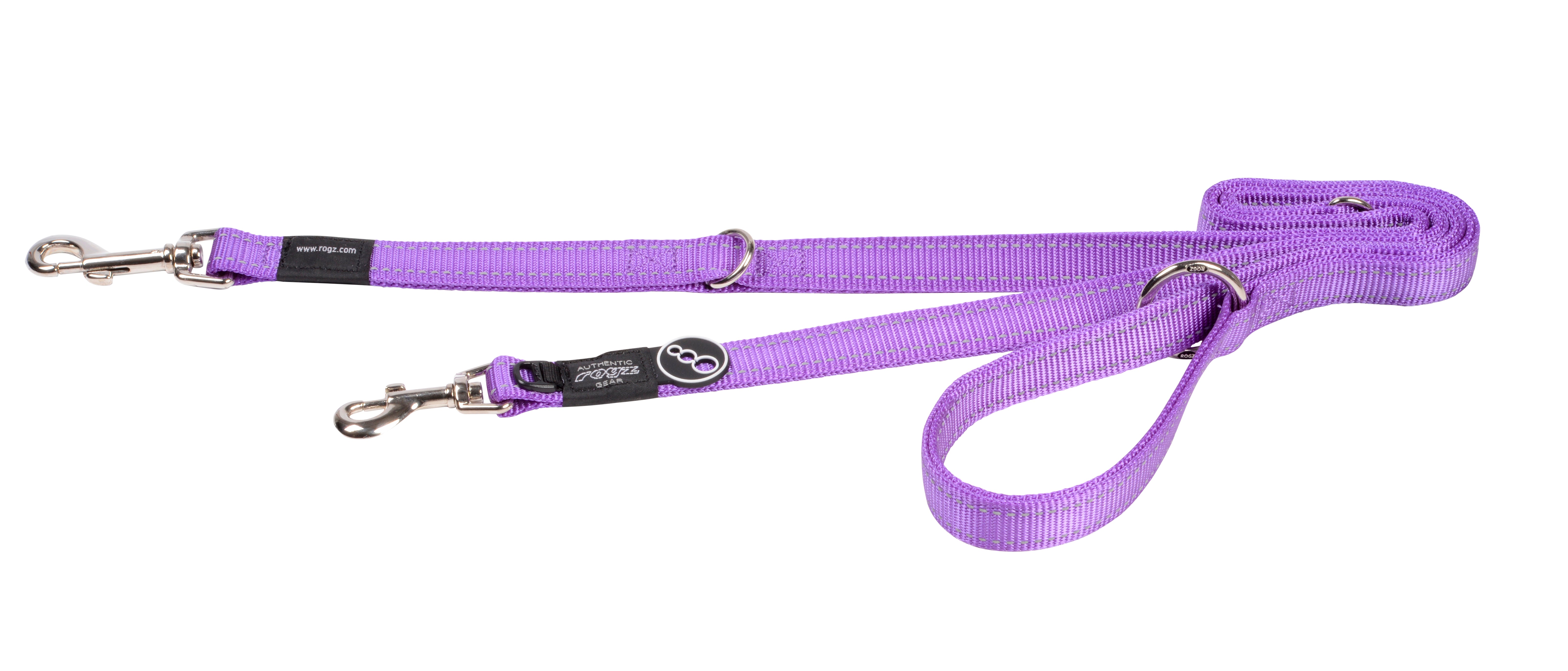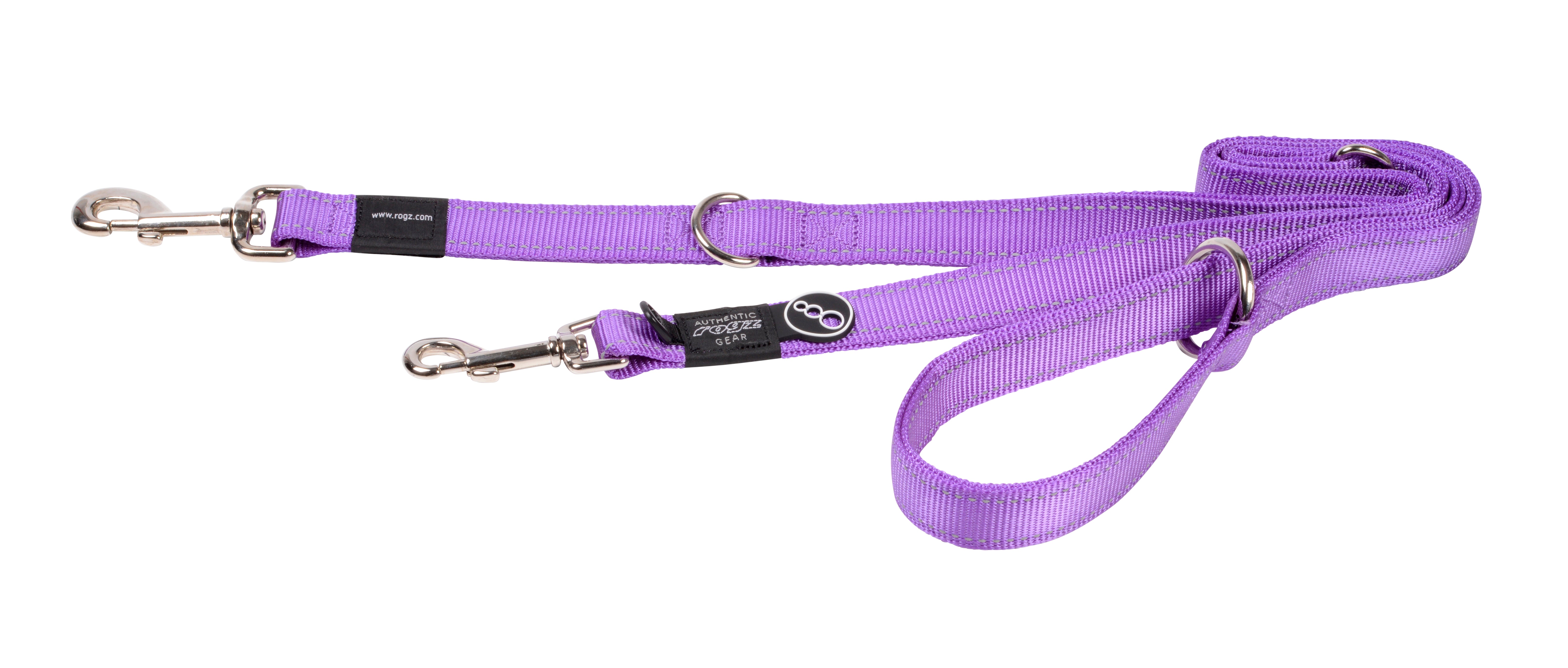 Rogz Multi Leads are the ultimate in colourful fashion. Extremely versatile giving it 6 different functions - long lead, medium lead, short lead, shoulder lead, double lead for two dogs and a temporary tie out.