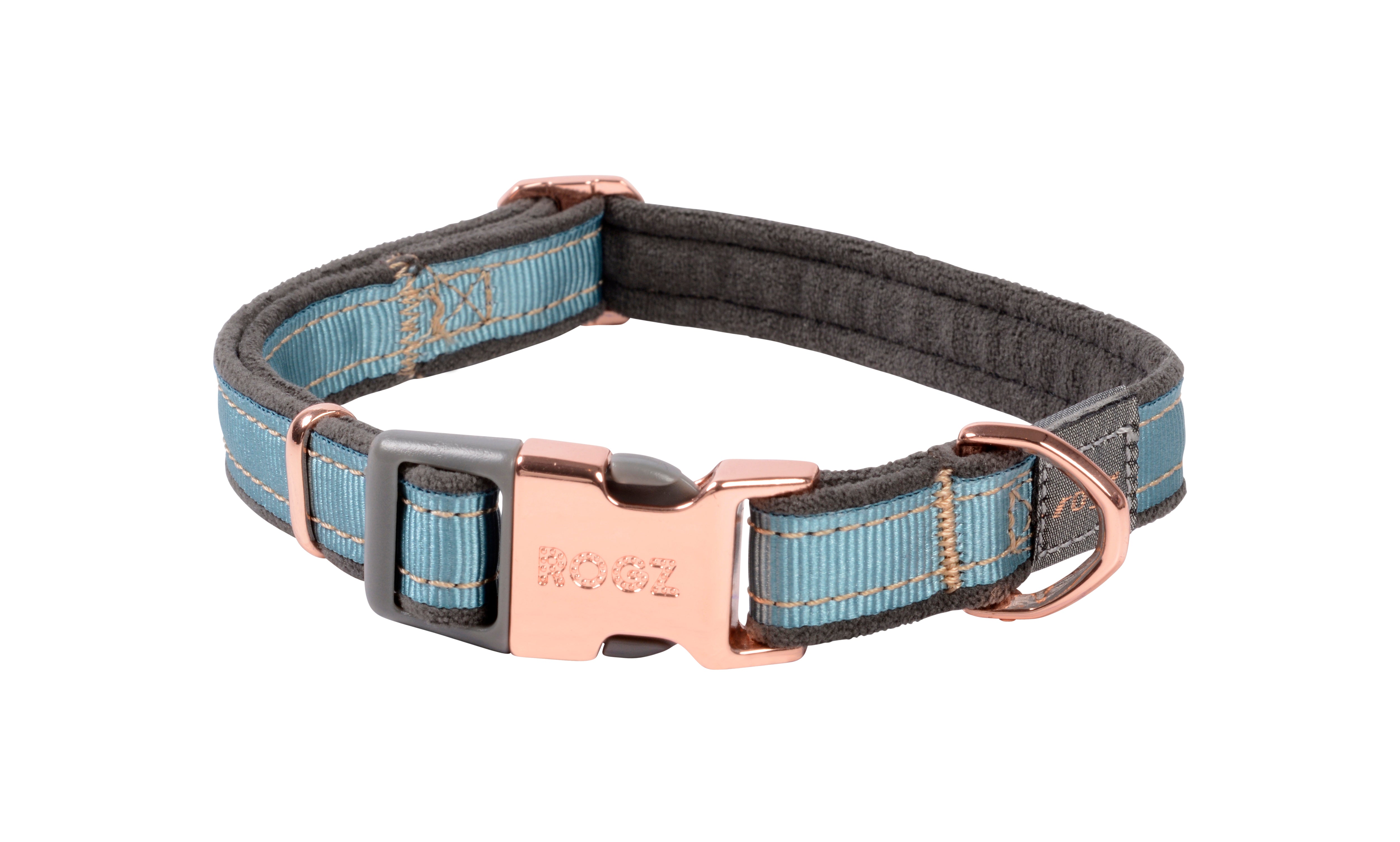 Soothing pastel colours stitched onto soft plush webbing and finished with rose gold trims, Rogz Small Dogs Urban Classic Collars feature a D ring for ID-Tag attachment for identification.