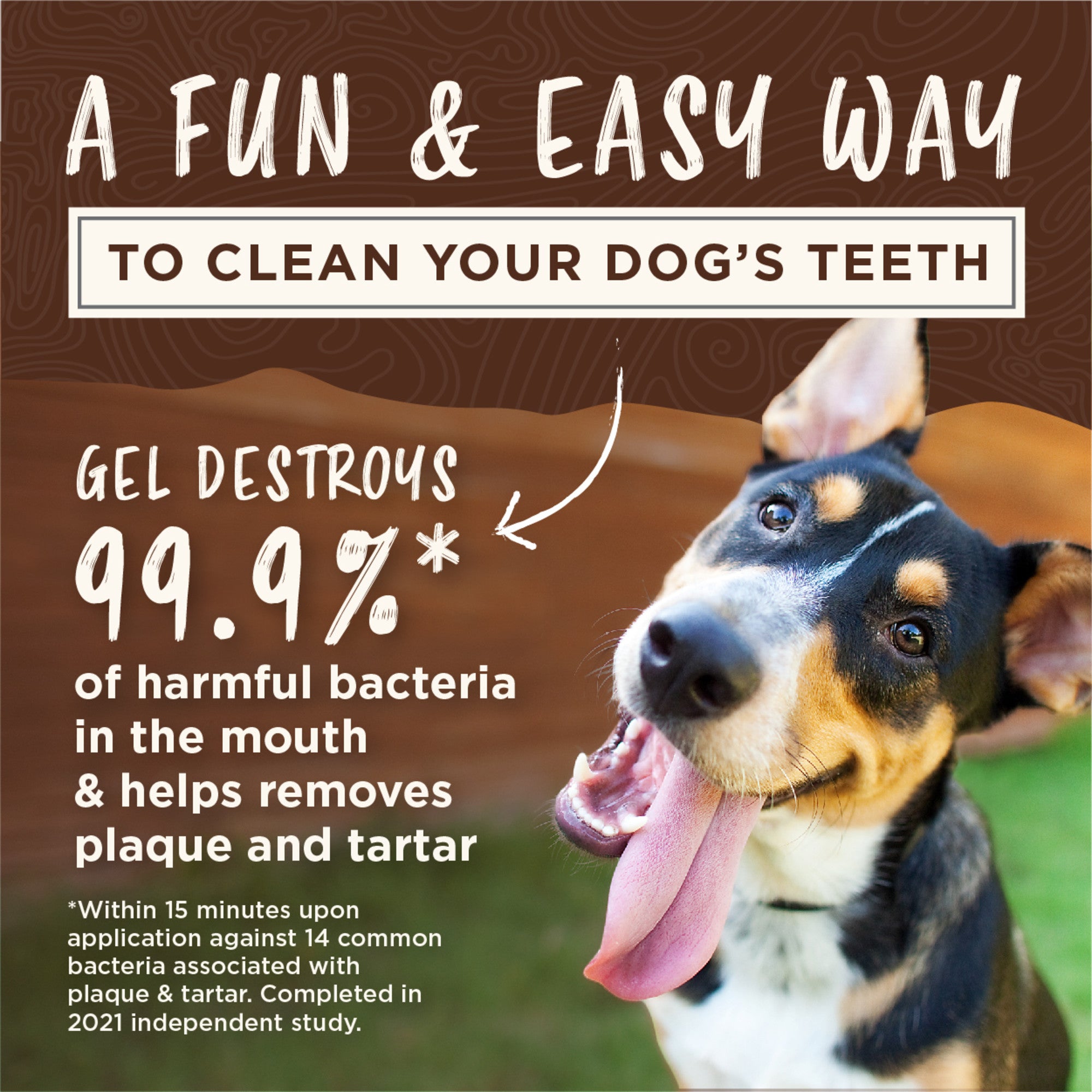 The gel removes 99.9% of bacteria in the mouth within 15 minutes upon contact with the teeth